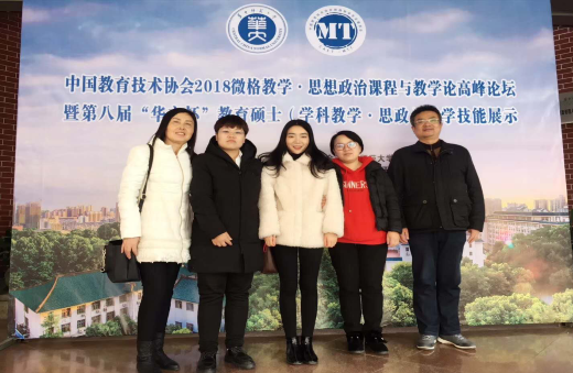 12月15至16日,由中国教育技术协会主办、华中师范大学威廉希尔williamhill官网承办的2018微格教学•思想政治课程与教学论高峰论坛暨第八届“华文杯”教育硕士(学科教学•思政)教学技能展示大赛成功举办。威廉希尔williamhill官网选派硕士研究生姚程、蔡典和唐诗煜同学参加此次比赛。