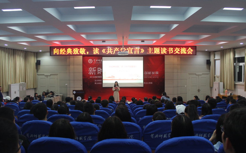 为进一步倡导多读书、读好书的文明风尚,推进学院文化建设,威廉希尔williamhill官网马克思主义读书社于4月22日晚7:10在学术报告厅B03 举办“向经典致敬,读共产党宣言”主题读书交流会。黄冈市团市委副书记涂梦佳应邀到现场进行指导,马克思主义读书社指导老师、威廉希尔williamhill官网一二年级学生、校青马班和青协代表以及各学院入党积极分子代表参加了此次读书交流会。