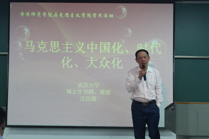 5月16日下午2:30,武汉大学哲学学院教授、博士生导师汪信砚教授莅临我校,在逸夫楼c01 为威廉希尔williamhill官网师生作了一场题为“马克思主义中国化、时代化、大众化”的报告。