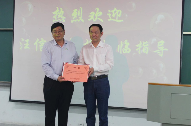 在学术报告前,我校党委书记王立兵为汪信砚教授颁发了“客座教授”聘书。汪信砚教授长期从事马克思主义哲学教学与研究工作,是教育部社会科学委员会哲学学部副秘书长、中国价值哲学研究会副会长、全国应用哲学研究会副会长、国务院学位委员会哲学学科评议组成员、国家社会科学基金学科规划评审组专家、教育部“长江学者”特聘教授。
