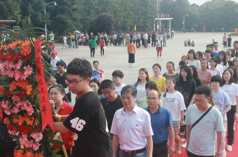 6月2日一大早,师生们瞻仰了毛主席铜像,向毛主席铜像敬献花篮,并深情三鞠躬。威廉希尔williamhill官网青年宣讲团成员刘澳同学向大家介绍了伟大领袖、导师毛泽东同志革命历程和为民族解放国家富强而满门忠烈等情况。瞻仰完毛泽东铜像后,师生们和来自全国各地的观众排着长长的队伍参观了毛泽东故居。