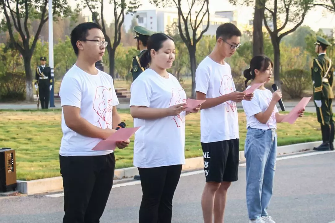作为一名光荣的黄师学子,面对鲜艳的国旗,我们庄严宣誓:我们始终高举马克思主义理论的旗帜,坚决拥护中国共产党的领导,耐心聆听恩师们的教诲,用心感受父母的恩情,心怀报效祖国之志,做新时代的德智体美劳全面发展的社会主义建设者和接班人。誓言声阵阵激昂、同学们斗志满满。