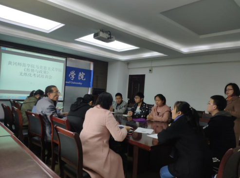 2019年11月21日,“形势与政策”教研室进行了本学期无纸化考试培训,教研室全体教师和部分学生干部代表参加了培训。本学期“形势与政策”教研室改革了课堂教学规模和教学方式,进行了轮转式教学,推行无纸化考试,本次培训就是围绕着考试具体措施而进行的,与会教师认真审核了考试内容,学习了考试流程,共同讨论商议了考试公告,教研室达成了一致意见并与技术人员进行了良好沟通。