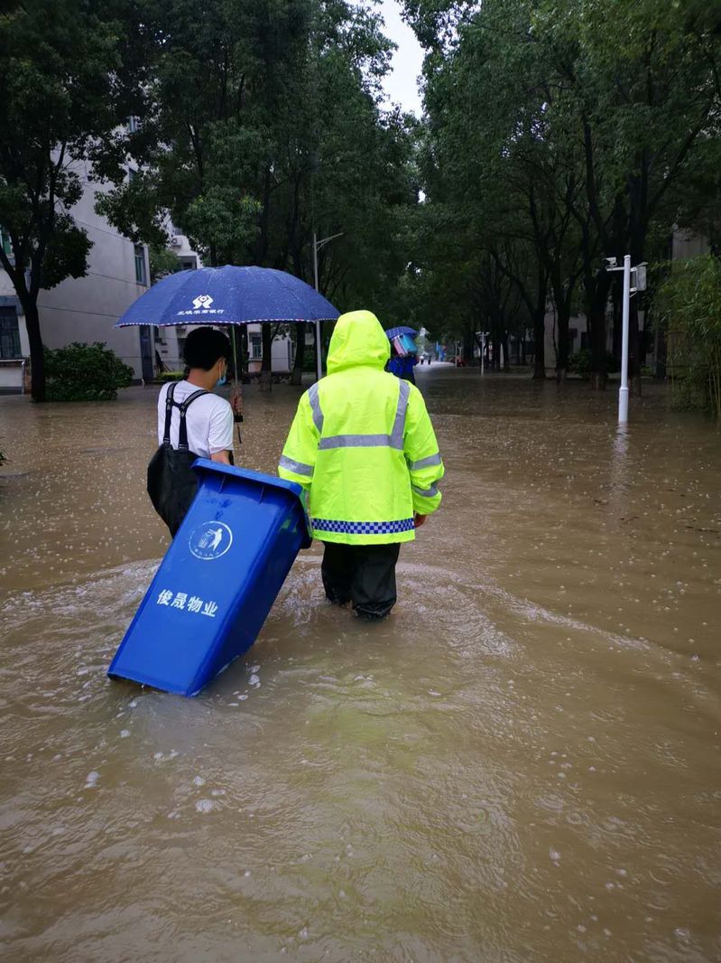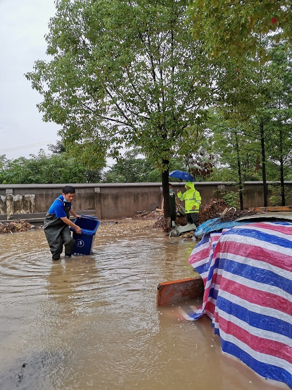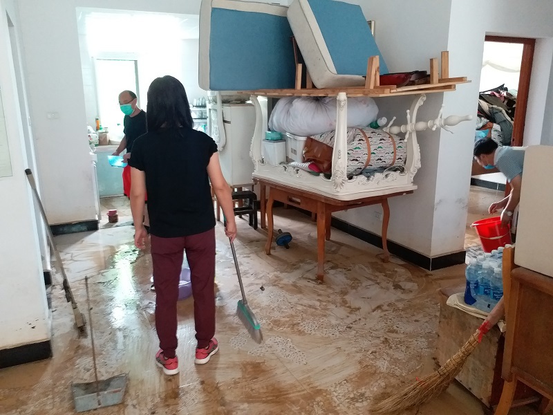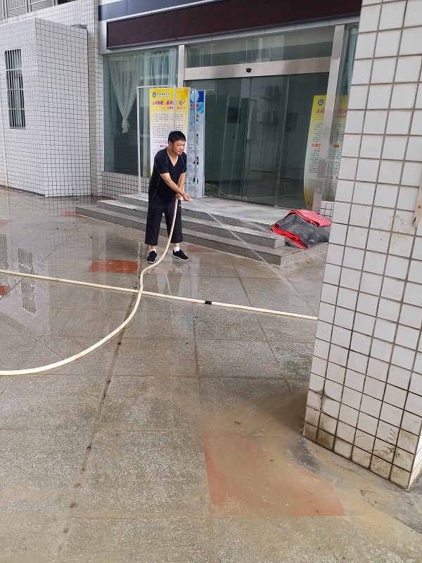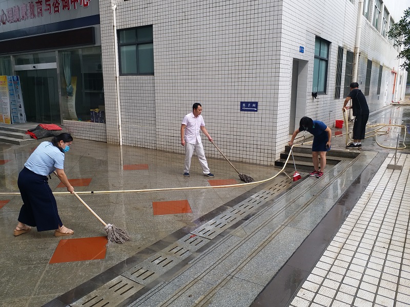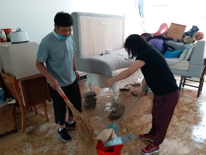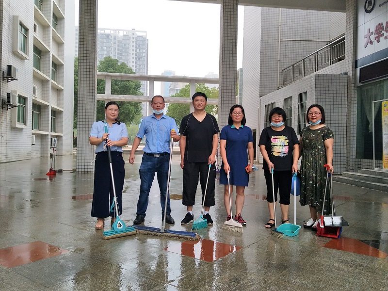 洪水灾情发生以后,学院党总支部第一时间做好应急处置、抢险救援等工作,为受灾教师遮风挡雨,带去了暖心和安心。7月7日,威廉希尔williamhill官网住在北校区兰园11栋一楼的裴艳丽博士家里被洪水围困,学院迅速成立了营救专班,班子全体成员及办公室成员,冒着瓢泼大雨,趟着齐腰深的洪水,把她及女儿安全转移出来,并将其家里的物品搬到安全的地方。7月8日,当得知校外陪读村租住教师陈松博士一家被洪水围困,导致无法出行时,学院领导专门冒雨送去下水衣等防灾物资,积极开展援助工作。在学校汛情基本得到控制之后,威廉希尔williamhill官网领导班子和老师们又积极投入到灾后自救的工作中。7月13日,威廉希尔williamhill官网组织了全体行政人员对院内所有办公室及楼面公共区域环境卫生进行了全面清扫和消杀工作。7月14日,学院组织力量又到裴艳丽老师家里,一起帮助其清理家里的淤泥和垃圾,打扫室内卫生,并仔细地进行室内清理和消毒,帮助她恢复正常的生活。7月16日上午,学院再次对致远楼一楼的周边区域、大学生活动中心周边进行了大清扫,清理洪水退去后的泥沙和垃圾,打扫周边环境卫生,使校园环境焕然一新。