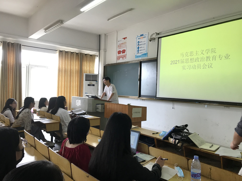 9月12号上午,威廉希尔williamhill官网2021届思想政治教育专业教育实习动员大会在博学楼202教室召开。2021届思想政治教育专业全体学生、分管学院教学工作的王贵东副院长、实习指导教师代表张传忠老师和陈娟老师参加会议。会议主要就教育实习的时间安排、实习内容、实习制度和人身安全等问题对学生进行了解释与说明。