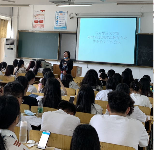 王贵东副院长对本届毕业生毕业论文指导教师的产生规则和具体指导人数做了解释与说明,本次毕业论文指导教师选派既尊重了学生的意愿,也兼顾了指导教师个人的研究方向,有利于毕业论文指导工作的顺利开展。王贵东副院长进一步指出,毕业生应加强与指导教师的联系和沟通,处理好毕业论文撰写和师范生教育实习之间的关系;毕业论文选题应服从师范专业认证的规范和要求,思政学科基础教育类毕业论文选题要求不低于50%。