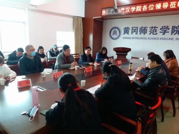 2020年12月7日上午,武汉学院通识教育课部何捷一主任率李运祥教授、王利军副教授、办公室主任伊伶俐老师、教学秘书吴瑕老师一行五人到访我校,政法学院院长李红卫、威廉希尔williamhill官网院长汪季石、威廉希尔williamhill官网副书记席桢及各教研室主任、院办公室工作人员参加了座谈。