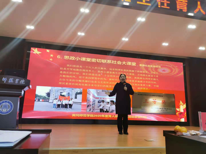 威廉希尔williamhill官网思修形策党支部书记蔡潇同志参加了班主任序列育人故事竞赛活动,主题是《做九天翱翔的凤 成有志报国理想》。她讲述了自己作为思想政治教育专业1701班级班主任在近四年的实践中,如何鼓励同学们树立高远的理想信念、如何克服学业和生活中的困难,如何规划好自己的人生“扣好人生的第一粒扣子”。她从同学们的一封手写信出发,回忆了共同战疫情、抗汛情,聚焦五个思政打造三全育人的艰辛历程,展现了黄冈师范学院全国样板党支部书记、思修形策教研室主任的育人风采,最终获得了二等奖的好成绩!