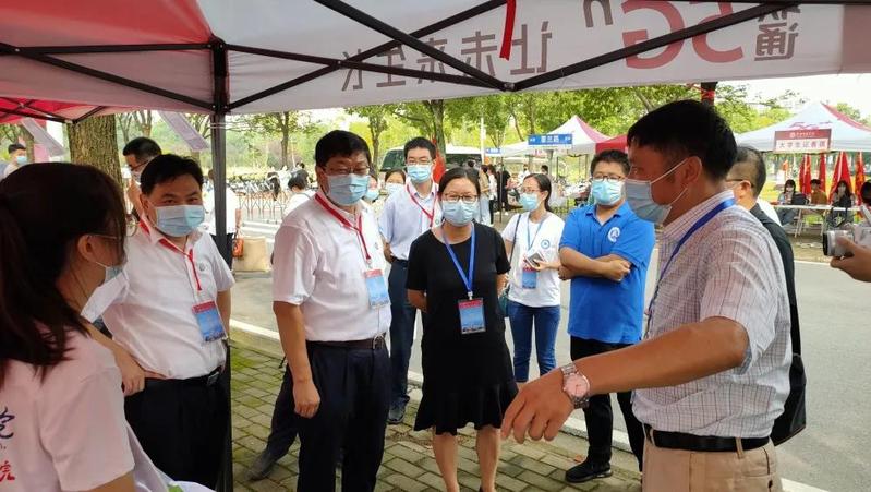 迎新工作之际,校党委书记王立兵、党委副书记、校长陈向军等校领导一行来到威廉希尔williamhill官网迎新现场看望新同学与志愿者师生,并向他们了解迎新工作的进展情况。