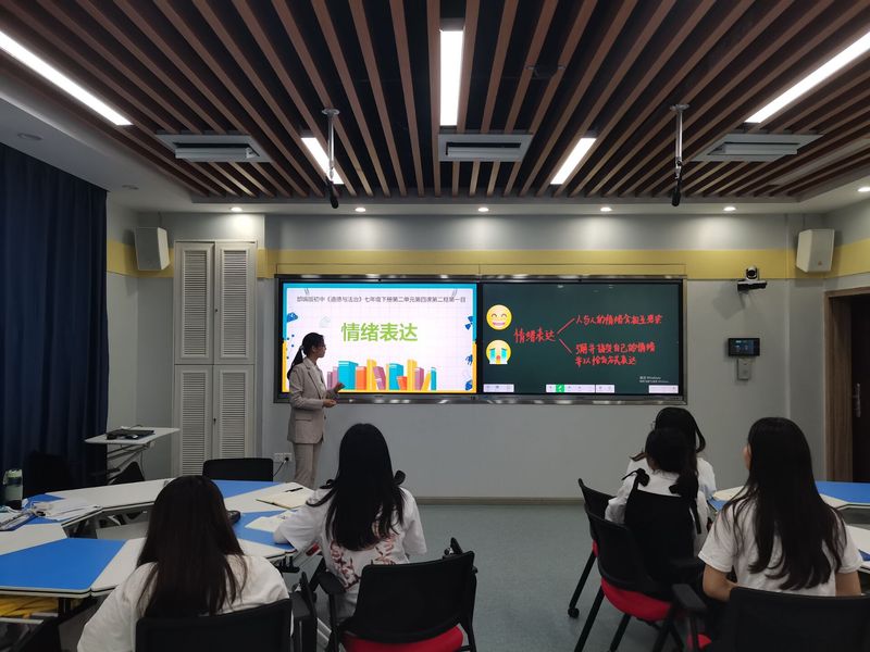 2022年5月22日下午,在求实楼305、307智慧教室,威廉希尔williamhill官网2019级思想政治教育专业胡亦昕和陈琪同学代表威廉希尔williamhill官网参加第十届湖北省普通高校师范专业大学生教学技能竞赛。学院领导高度重视本次比赛,副院长王贵东博士莅临比赛现场进行指导,思想政治教育专业教师夏保雄、李莉、张传忠带领2020级思想政治专业卓越班学生观摩本次比赛。