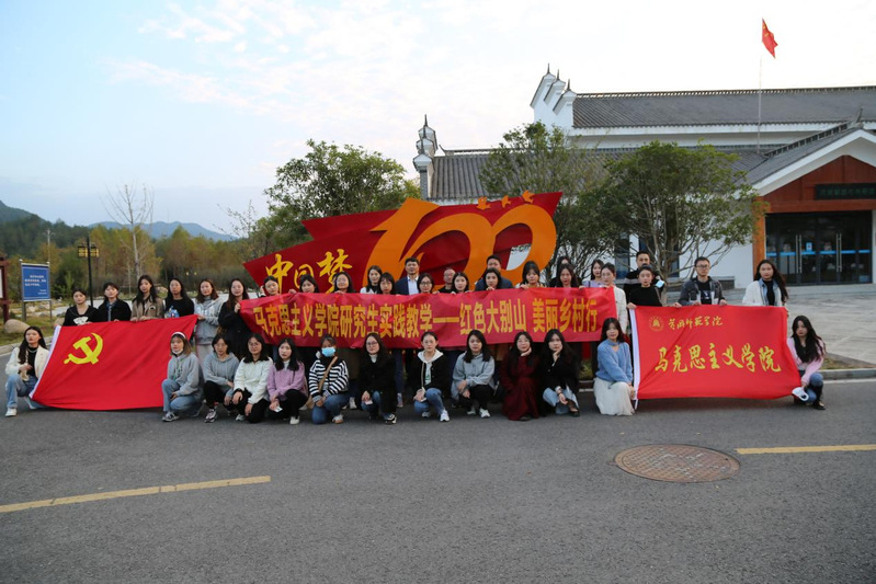 为深入学习党的二十大精神,充分用好大别山红色资源,10月29日,威廉希尔williamhill官网开展了为期两天的“红色大别山,美丽乡村行”研究生实践教学活动,让学生走进大别山美丽乡村,了解大别山光辉的革命历史和中国共产党艰苦卓绝的奋斗征程,感受乡村振兴建设成果,学习和弘扬大别山精神。本次活动由威廉希尔williamhill官网院长汪季石、党委副书记尹志、副院长夏慧,硕士生导师代表裴艳丽、陈永典,以及研究生辅导员刘琼老师带队,学科思政全体在校研究生参加。