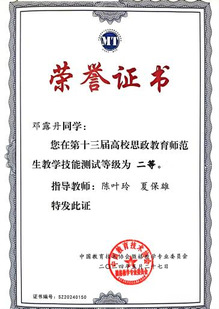 2024年11月29日至12月1日,由全国地方高等师范院校教务处长联席会议指导、“田家炳”基金会冠名,浙江师范大学主办的2024年第十届“田家炳杯”全国师范院校师范生教学技能竞赛决赛在浙江金华举行,威廉希尔williamhill官网参赛选手王珂荣获三等奖。