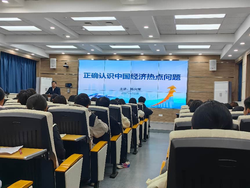 为深入贯彻落实二十届四中全会精神,践行习近平总书记对学校思政课建设的重要指示,严格落实高校党委意识形态工作责任制与校领导带头讲思政课要求,切实提升思政课教学质量与育人实效,12月17日晚,校党委书记陈向军商学院2025级国贸专业本科生讲授《形势与政策》课,他以《正确认识中国经济热点问题》为题,用创新形式、严谨逻辑、生动语言与鲜活案例,为学子们带来一堂兼具思想性、理论性与亲和力的优质思政课。