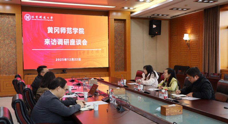 为深入学习借鉴国内高水平大学在思政教育与育人共同体建设方面的先进经验,进一步推动我校马克思主义理论学科建设与师范特色育人工作提质增效,12月22日,黄冈师范学院校党委常委、威廉希尔williamhill官网党委书记余晚霞带队赴北京科技大学开展专题交流访问。双方围绕构建“新时代高校育人共同体”主题,就党建引领思政教育、育人模式创新、资源协同共享等关键议题展开深度研讨。